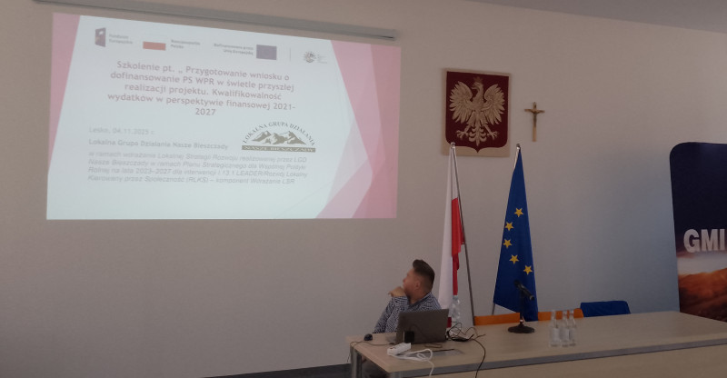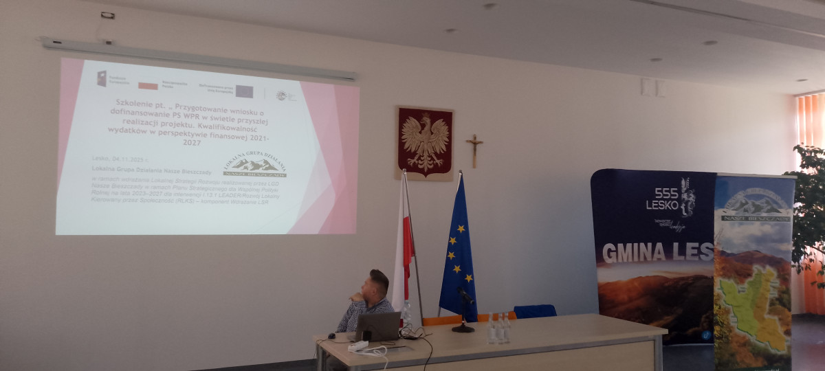 W dniu 04.11.2025 r. w Urzędzie Miasta i Gminy Lesko przeprowadzone zostało szkolenie pt.: „Przygotowanie wniosku o dofinansowanie PS WPR w świetle przyszłej realizacji projektu. Kwalifikowalność wydatków w perspektywie finansowej 2021–2027”.
